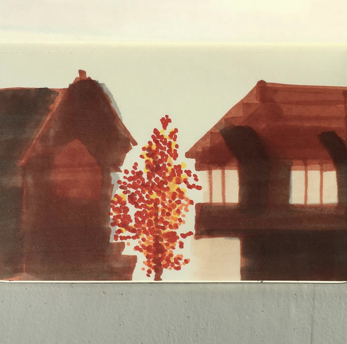I like drawing with marker pens and no hard lines. And I'm a bit obsessed with this tree.