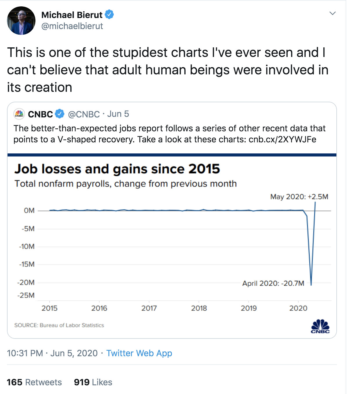 After this one the other day, here's another bad chart. Or as Michael puts it, "This is one of the stupidest charts I've ever seen and I can't believe that adult human beings were involved in its creation". His tweet here.
