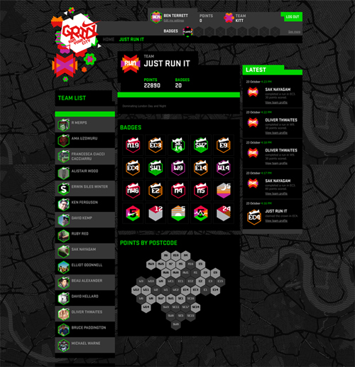 You may remember I was Creative Director on the first one with w+k, I thought I'd written about it on here, but I can't find the post. To save time there's a quick overview written by Doug E Fresh. The second one is bigger and bolder and has been aided by Dan Hon joining the team at w+k. So we've plundered his gamification skillz to make the gameplay better and to allow new ways of playing such as team play.
