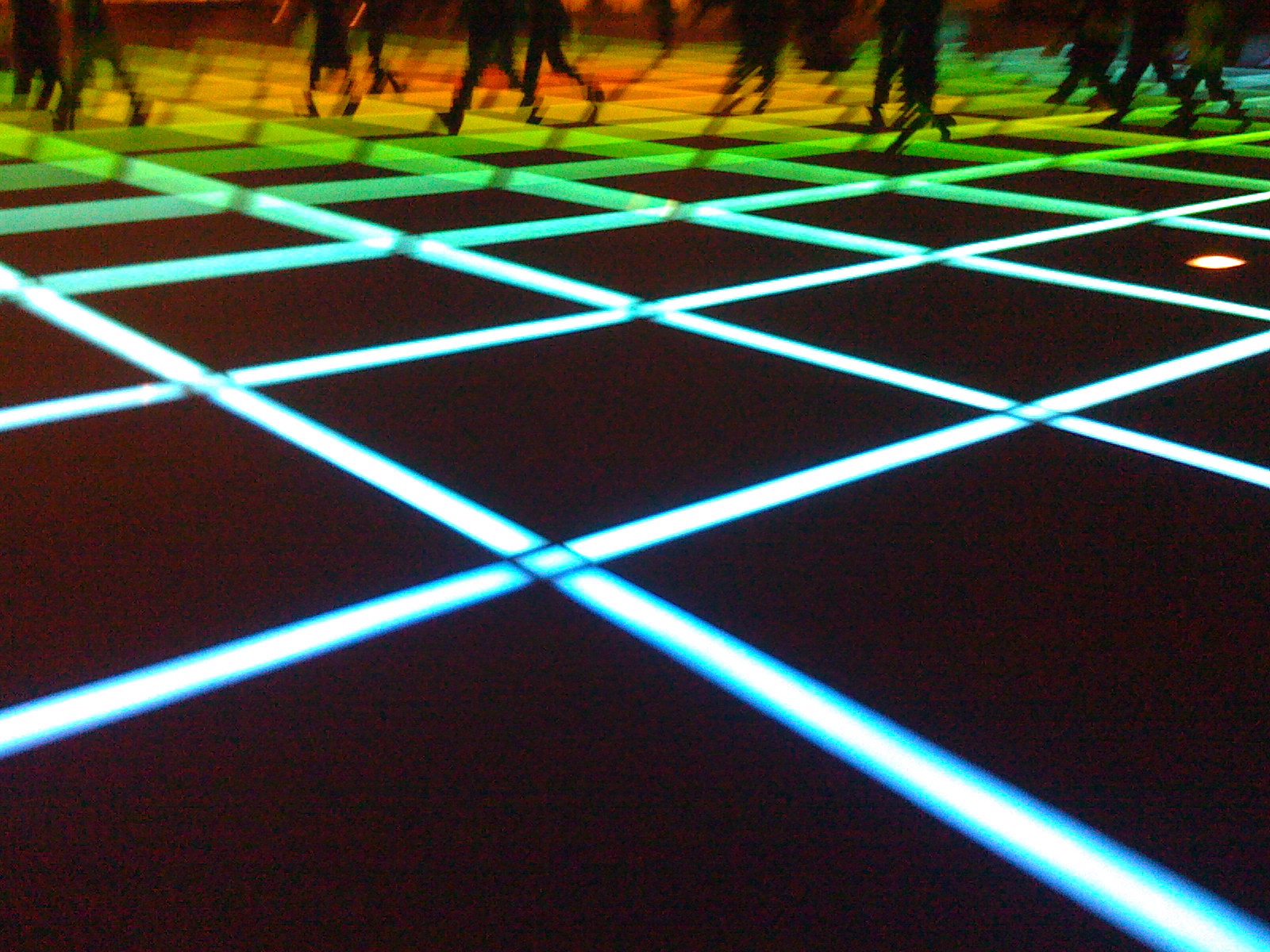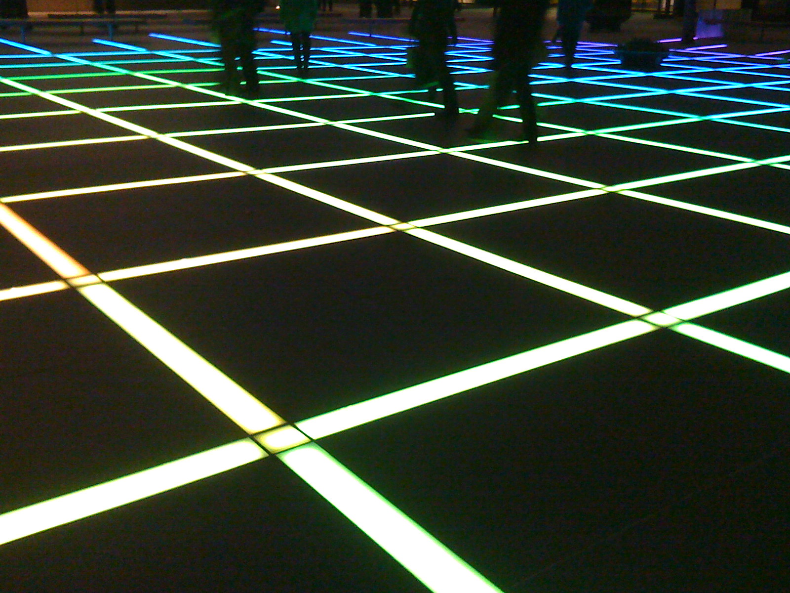 "glowing changing rainbow tron grid filling a square in the City, underlying structure of the universe shining through" as Matt would say. Well, as Matt said.