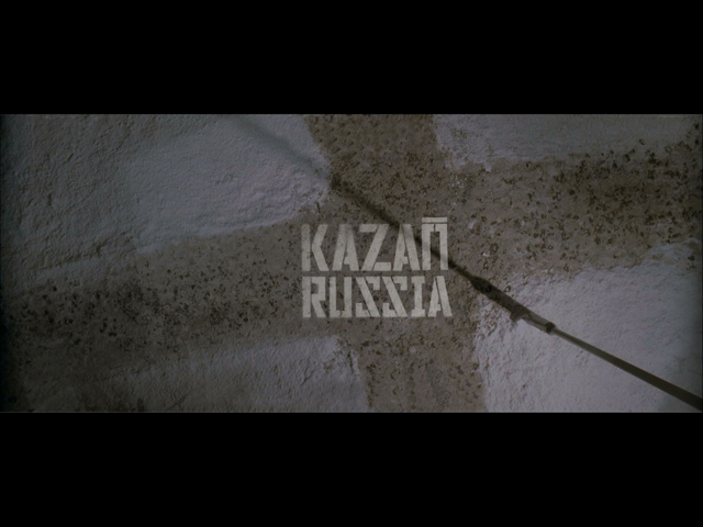 As the film moves from location to location these, quite intricate, titles appear informing you where the action is set. Sometimes they're simple text on screen as above. And sometimes they've part of the scene as below where a car drives over the word London.