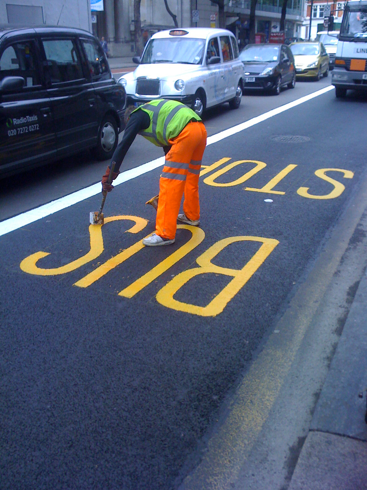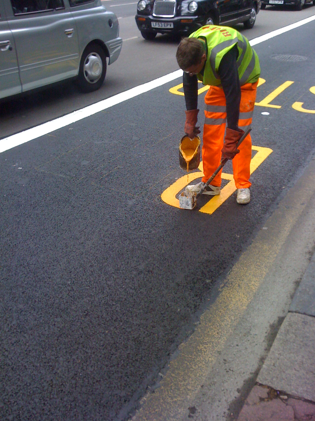 I used to do jujutsu (before I got a girlfriend), and once-upon-a-time I went to the National Indoor Arena in Birmingham for this jujutsu competition. It was pretty special because you got to watch the dans fight. They were super-elegant, and so full of power and control. This fella writing 'bus stop' on the road was no less graceful than those jujutsu masters.