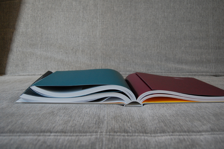 Each section is covered by an extended page that's on slightly thicker stock and folds in to wrap around a section.