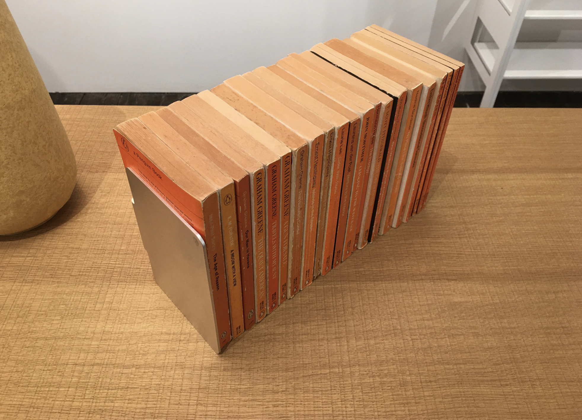 It's called the Jasper Morrison Penguin Huddle. It's a neat little invention that clasps your books together so you can stand them up. Like a portable book shelf when you have the books but not the shelf. It's an elegant simple piece of design and it feels clever.