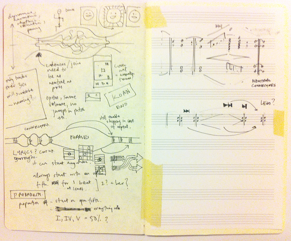 " I really want to see... Music made for the shuffle - pieces designed to appear randomly but still hang together. More than a bunch of songs. And long too, filling up a shuffle, hours worth of it."